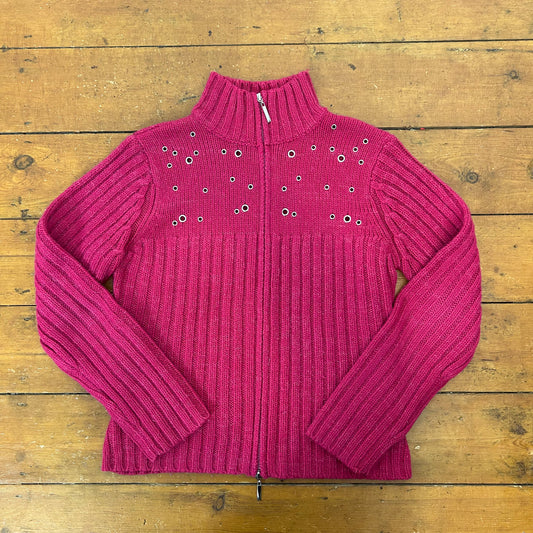 vintage 00s hot pink eyelet dual zip up knit jumper