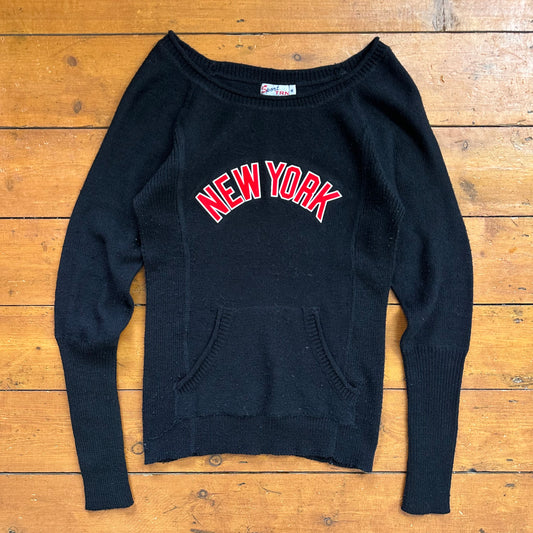 vintage 00s black knit off shoulder New York jumper