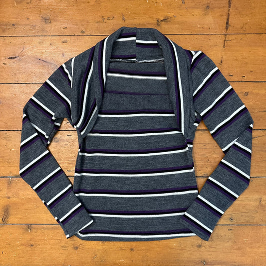vintage 00s grey and purple striped jumper
