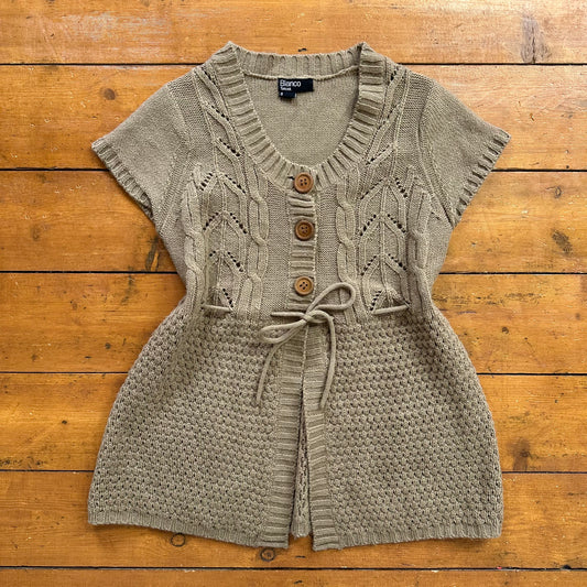 vintage 00s beige babydoll style short sleeve cardigan