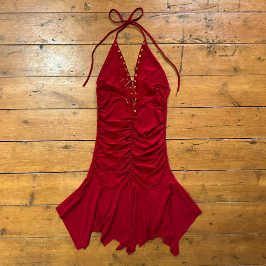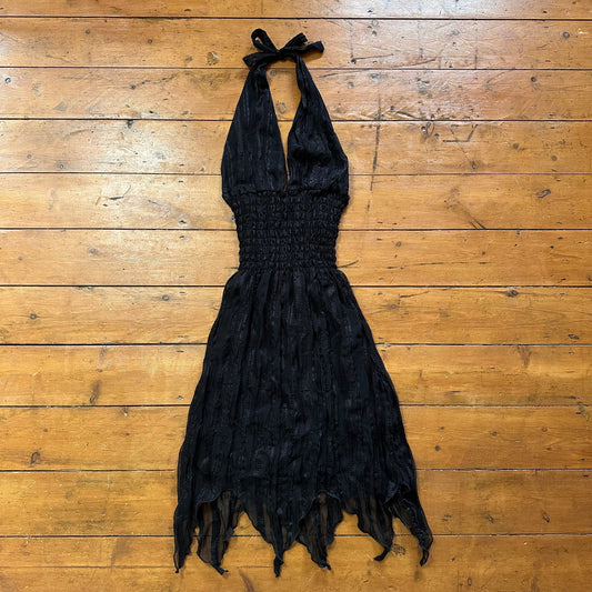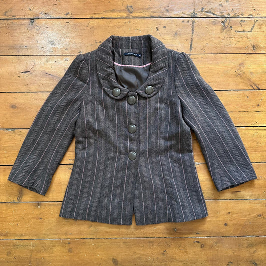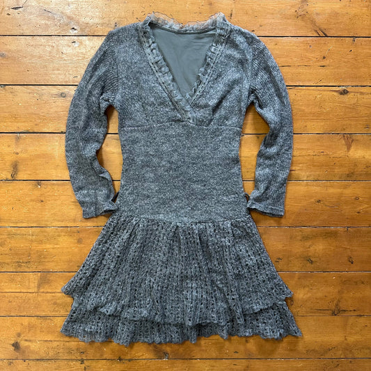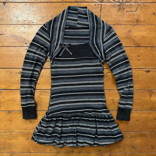 vintage 00s grey striped bubble hem mini dress with inbuilt shrug