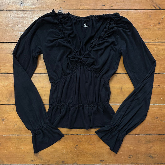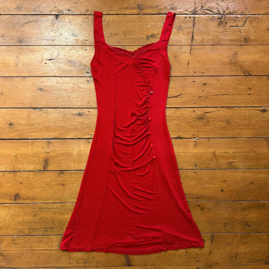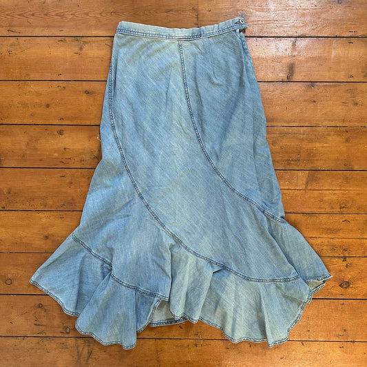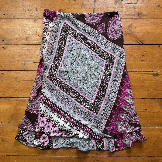 vintage 00s black polka dot asymmetrical midi skirt with belt