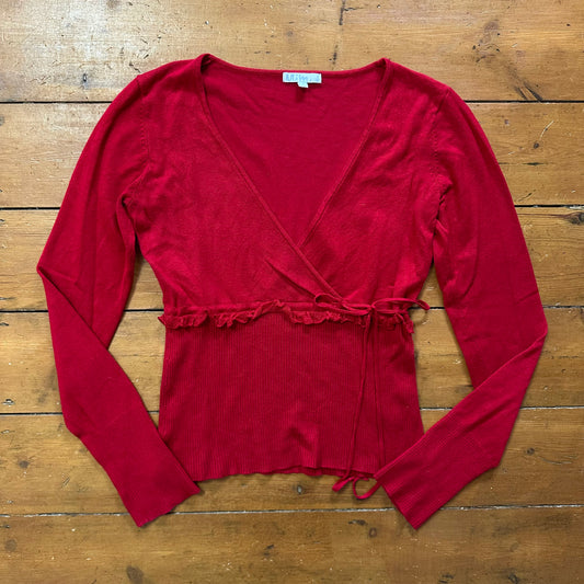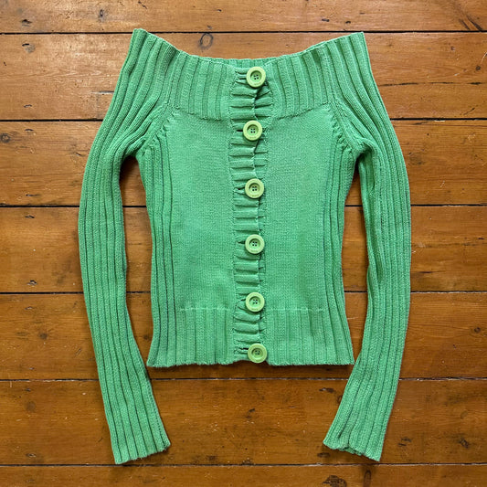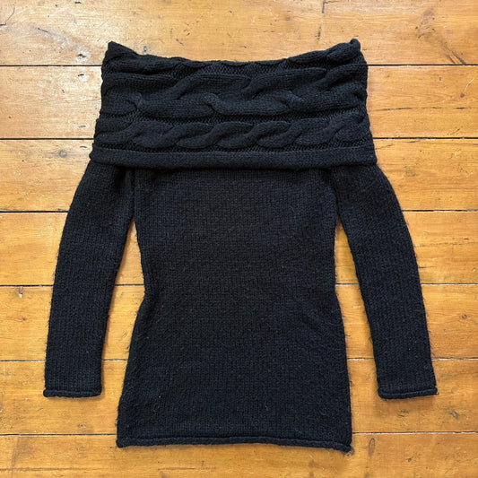 vintage 00s brown crochet knitted off shoulder jumper with rose