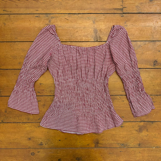 vintage 00s red and white gingham milkmaid top