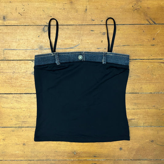 vintage 00s black slinky denim trim cami