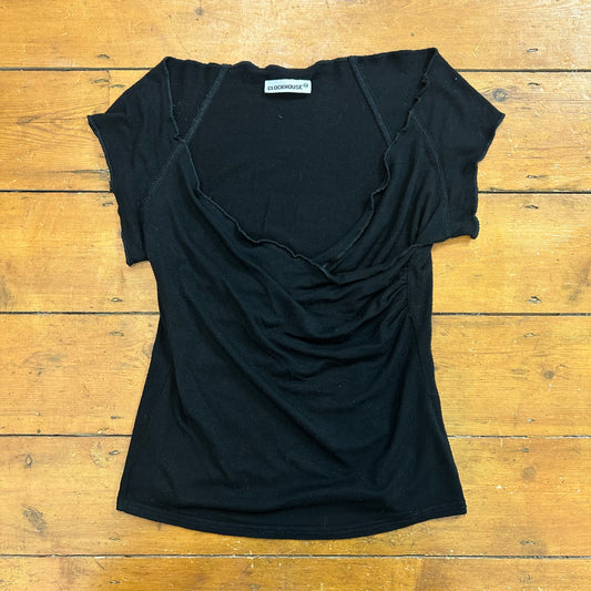 vintage 00s yellow low cut ruched top