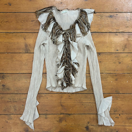 vintage 00s beige plisse long sleeve top