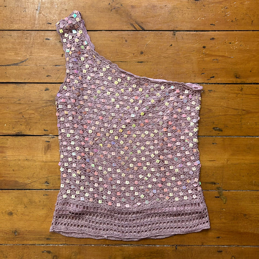 vintage 00s pink sequin crochet one shoulder topRegular price £32.00 GBPRegular priceUnit price / per-