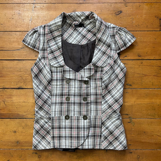 vintage 00s brown checkered short sleeve peacoatRegular price £38.00 GBPRegular priceUnit price / per-