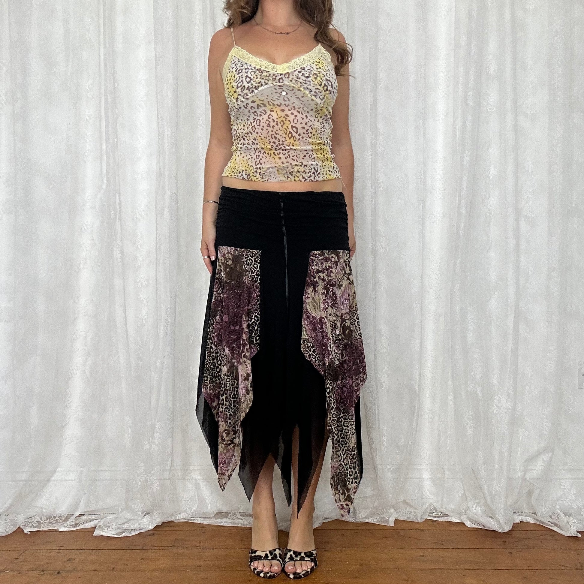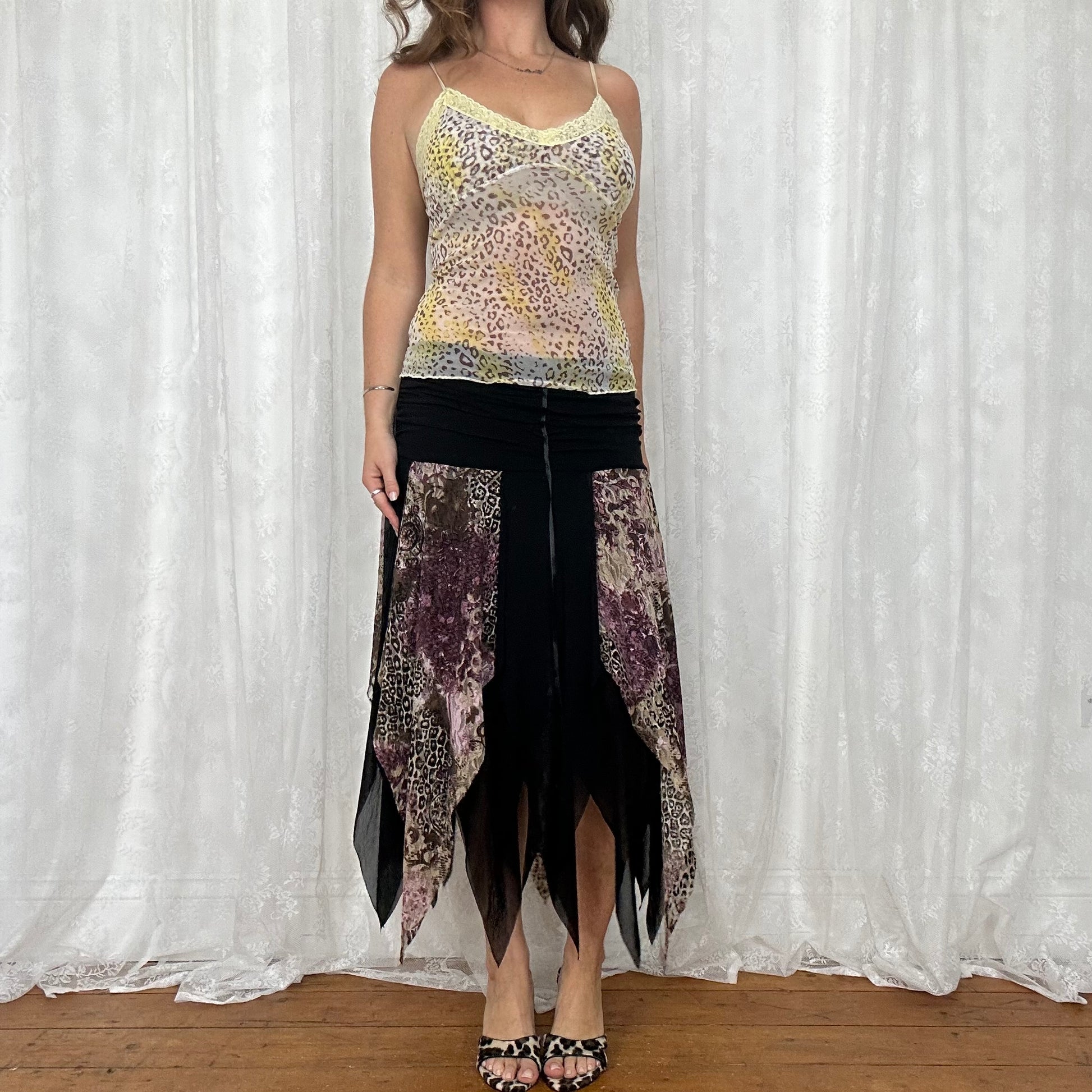 vintage 00s yellow leopard print mesh cami top