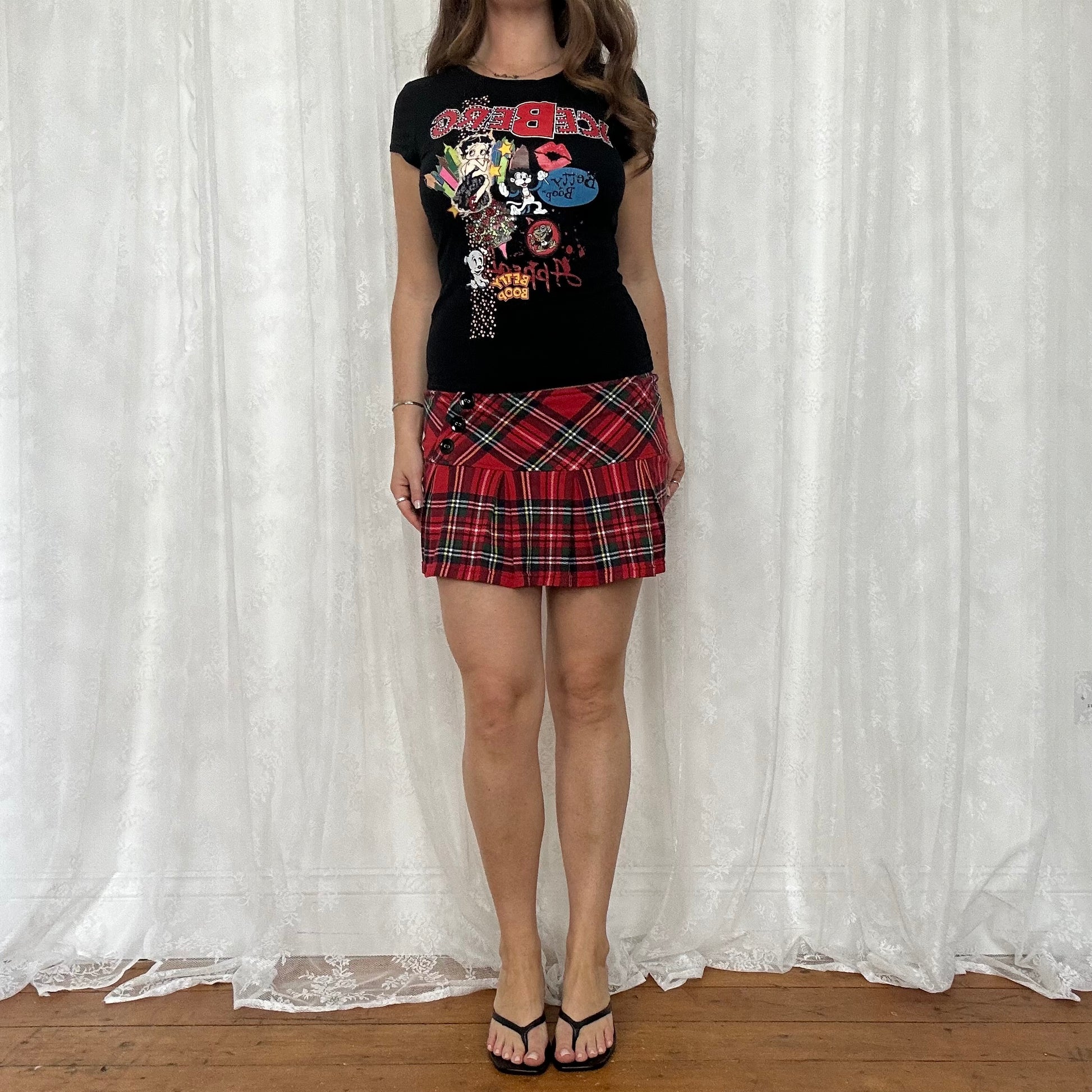 vintage 00s red tartan pleated mini skirt with matching scarf
