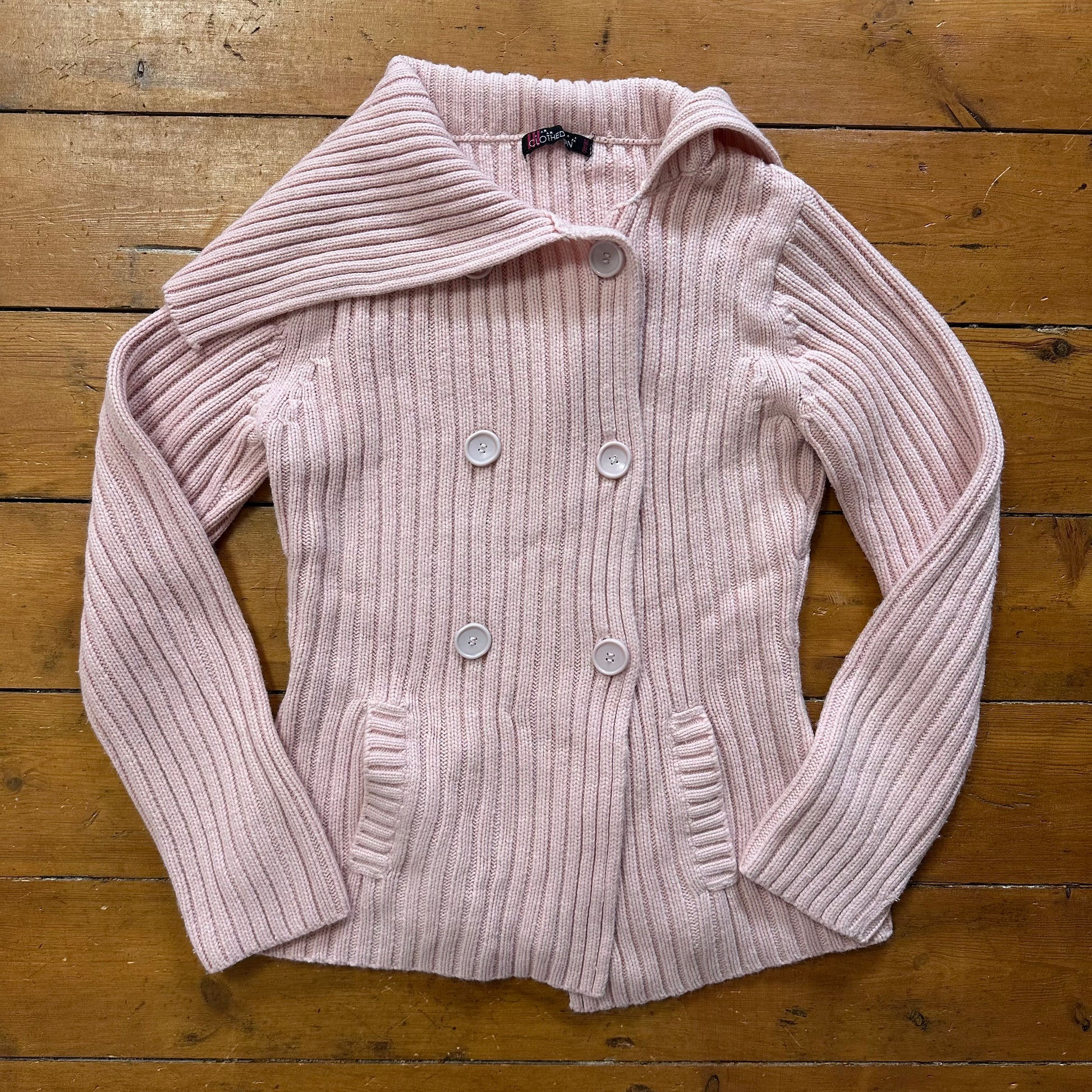 vintage 00s baby pink chunky ribbed jumper with oversized collar