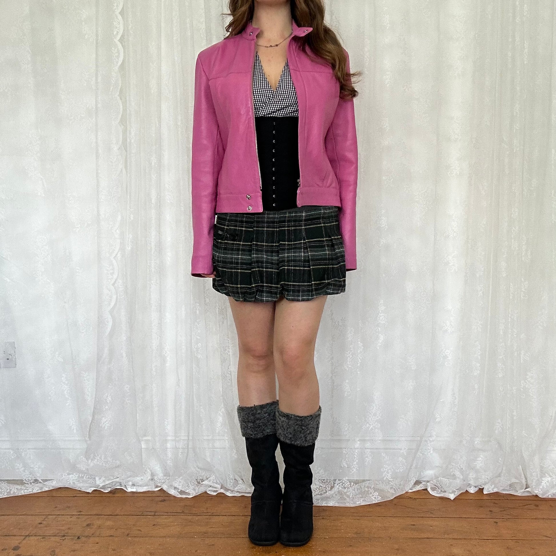 vintage 00s barbie pink leather jacket