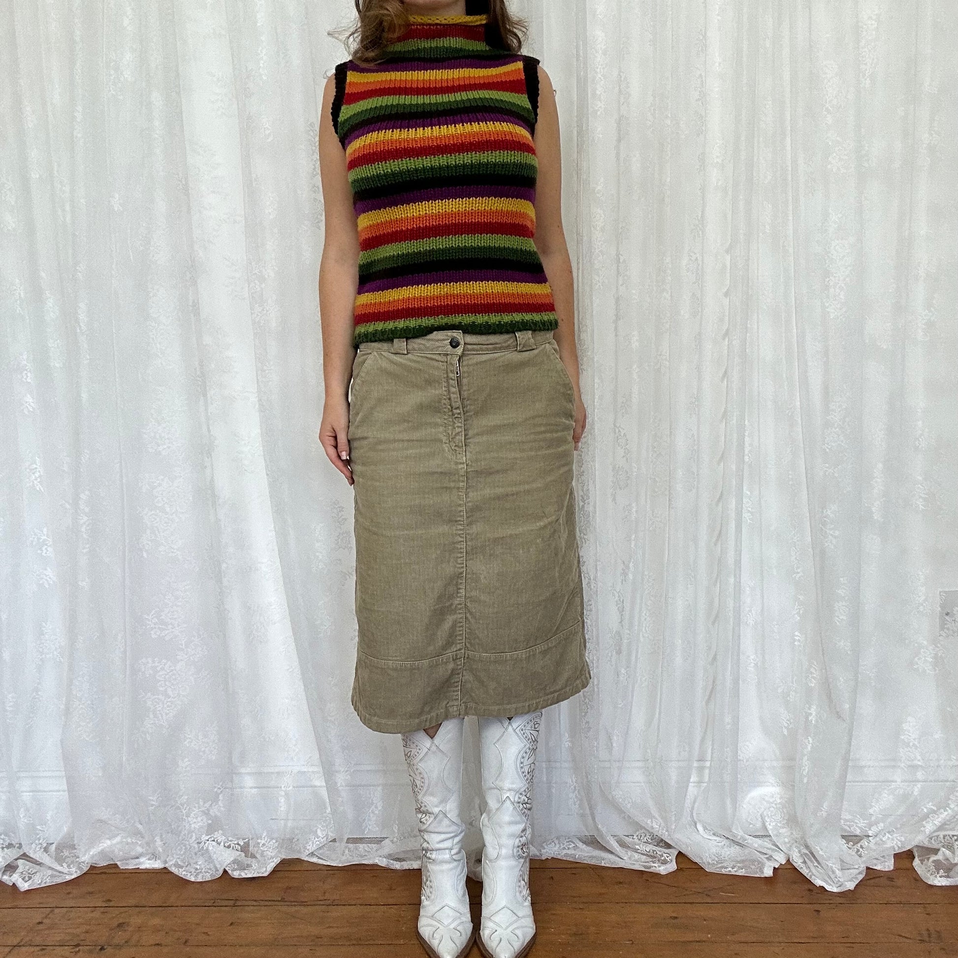 vintage 00s beige cord midi skirt