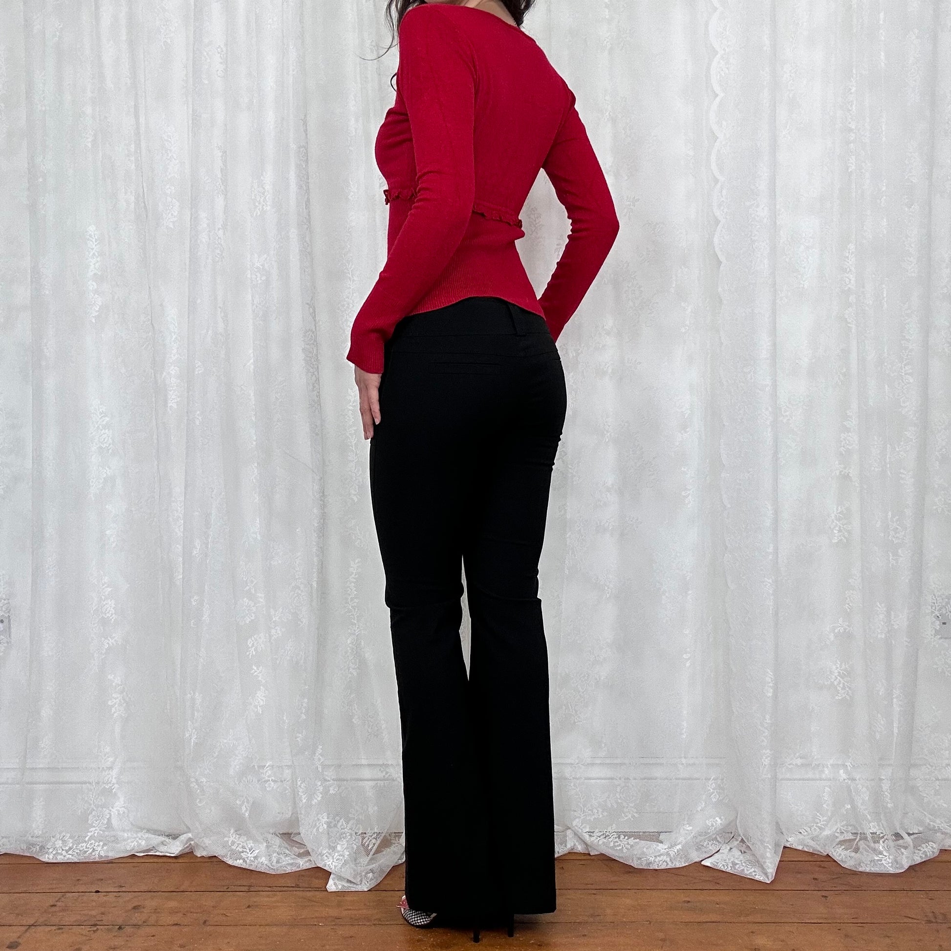 vintage 00s red thin knit ribbed crossover top