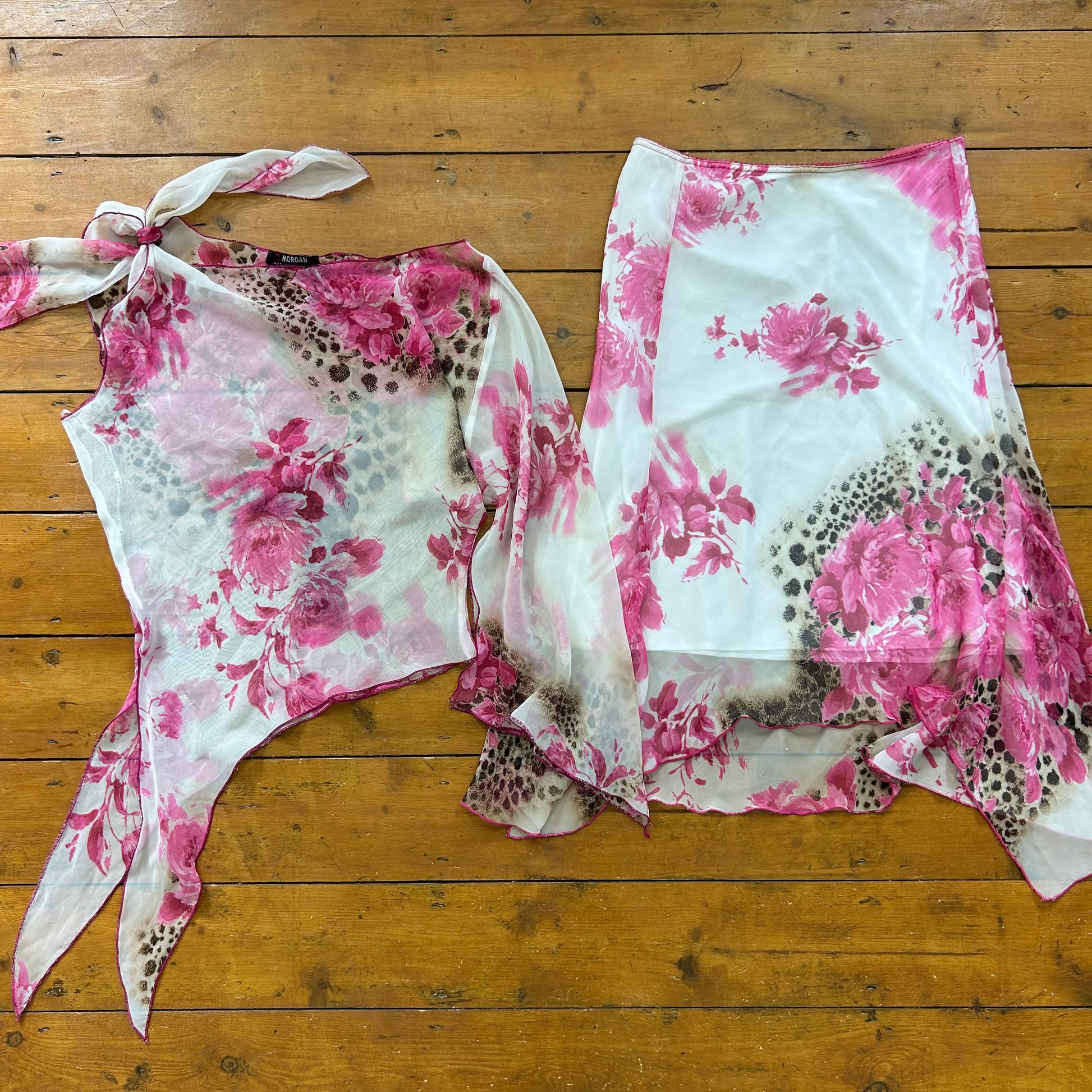 vintage 00s Morgan de toi pink flower and leopard print co ord
