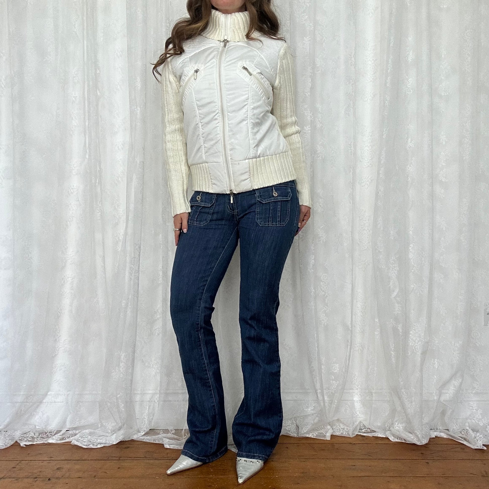 vintage 00s white cream cable knit puff jacket/jumper