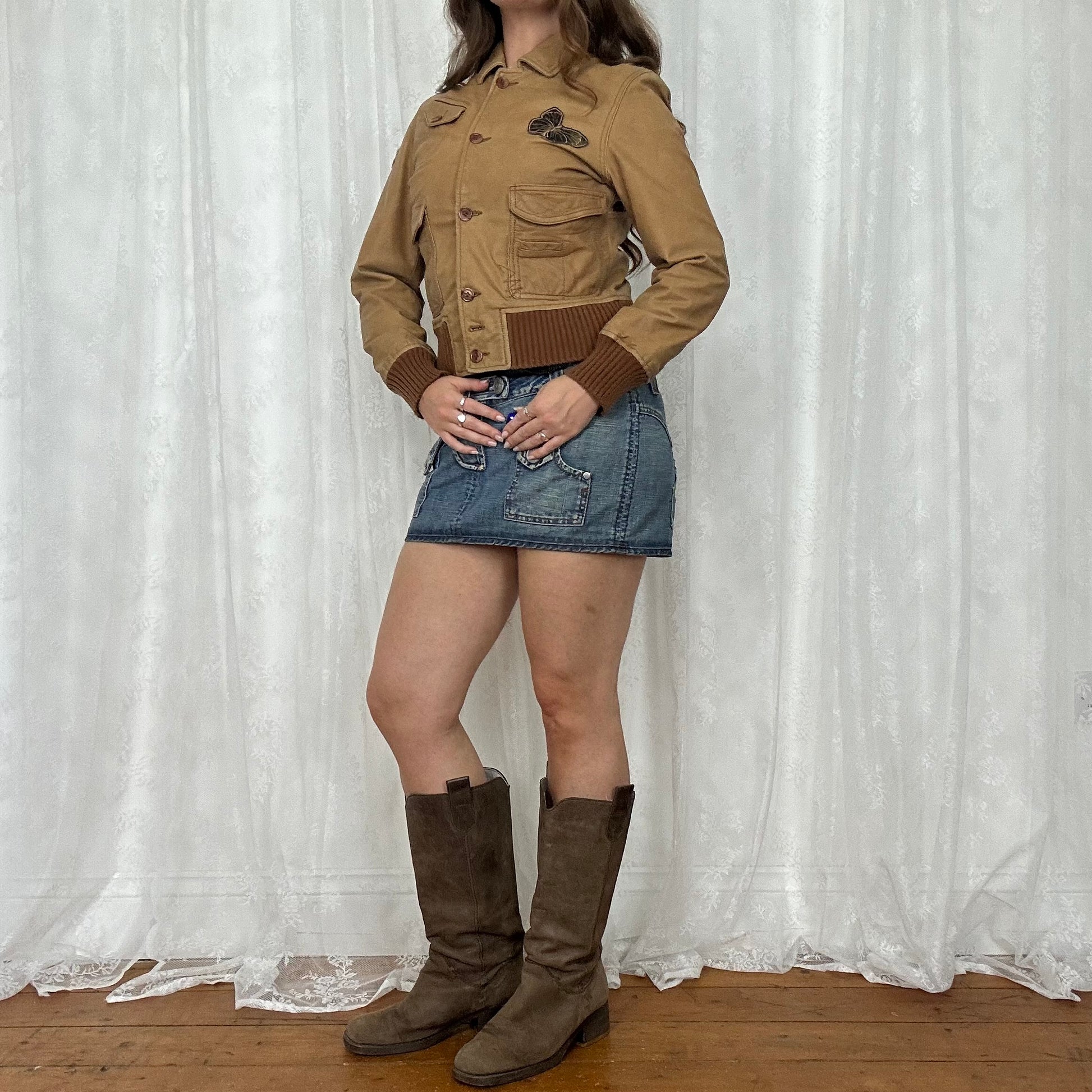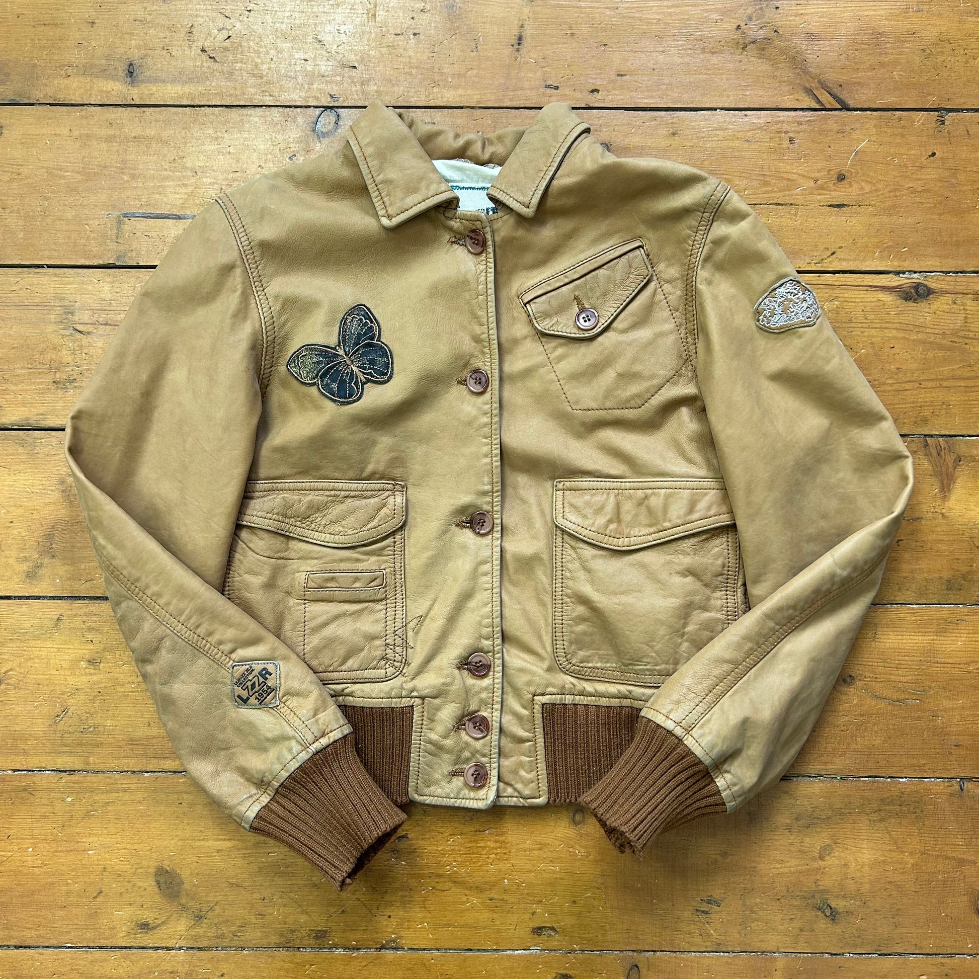 vintage 00s brown patch leather jacket