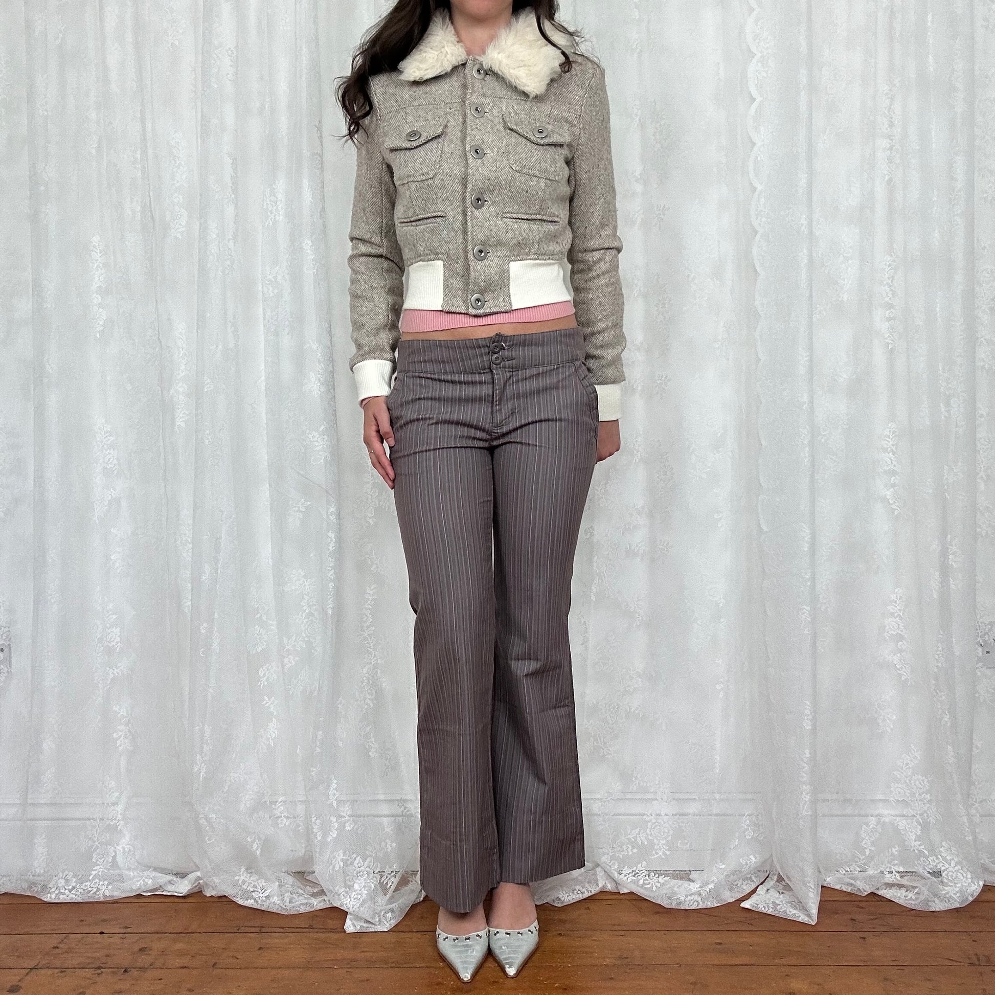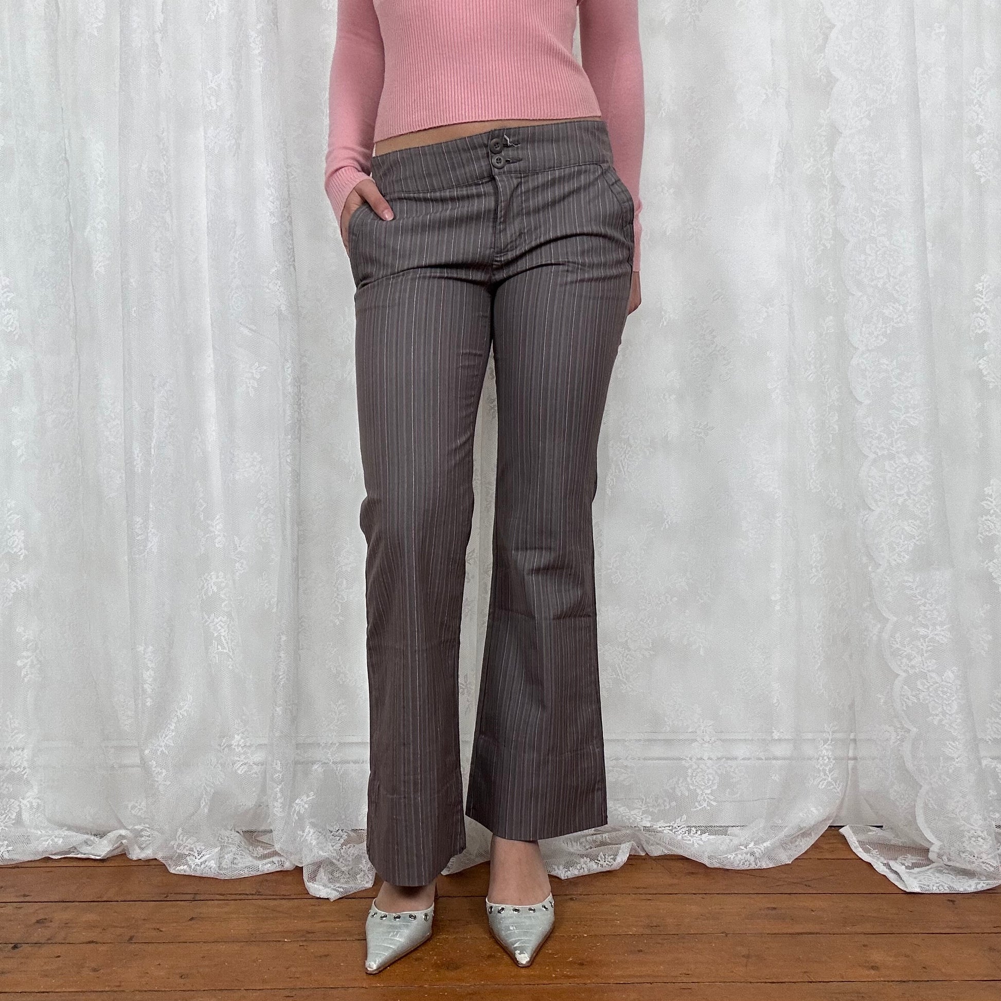 vintage 00s brown pinstripe trousers
