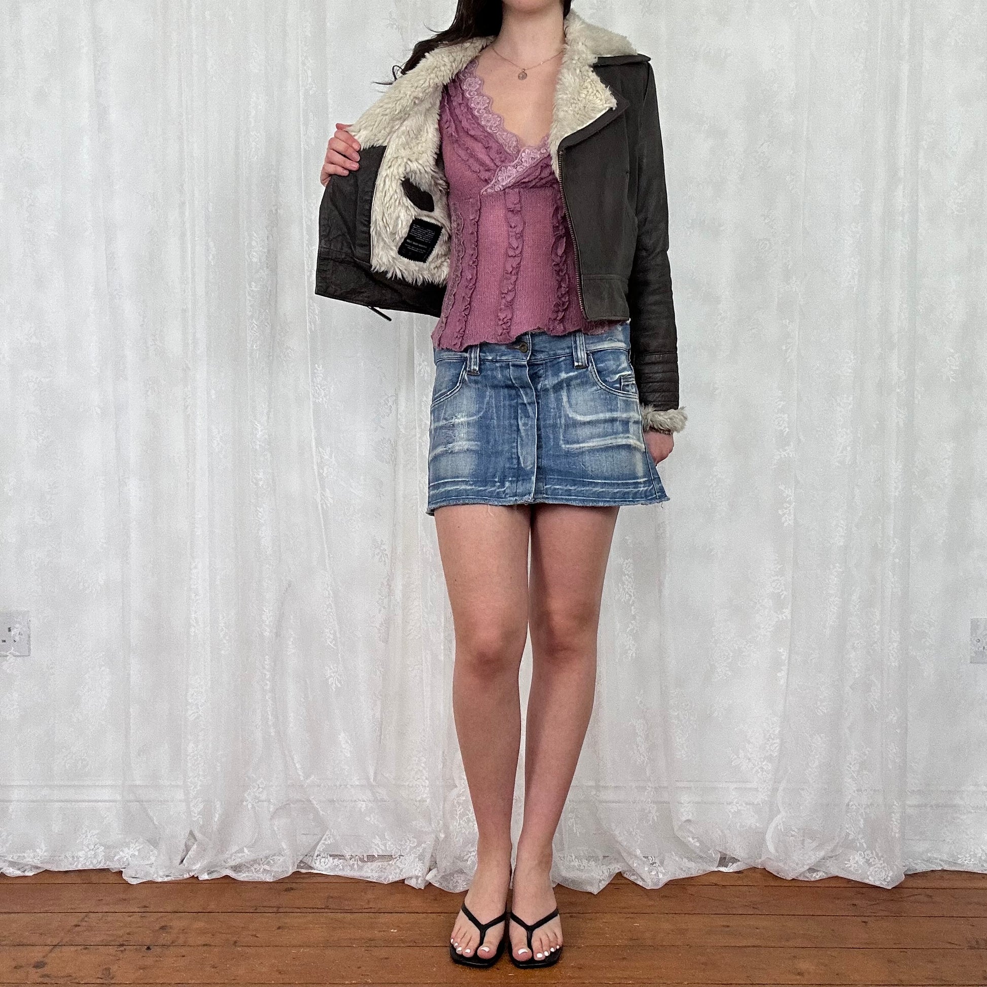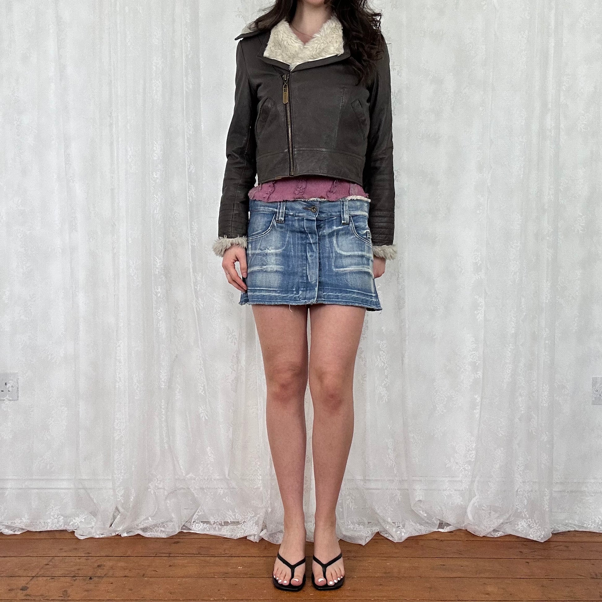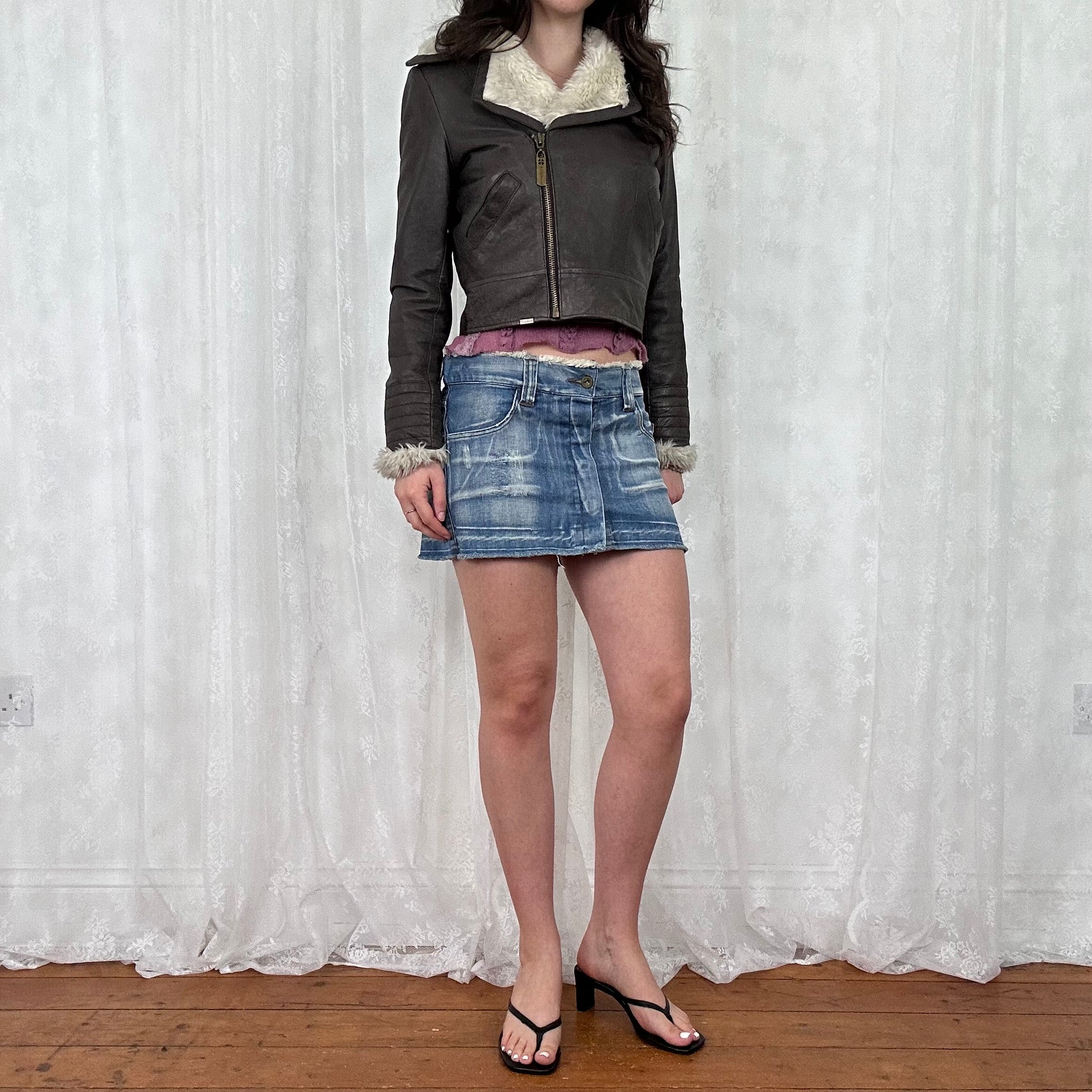 vintage 00s dark brown crop aviator jacket
