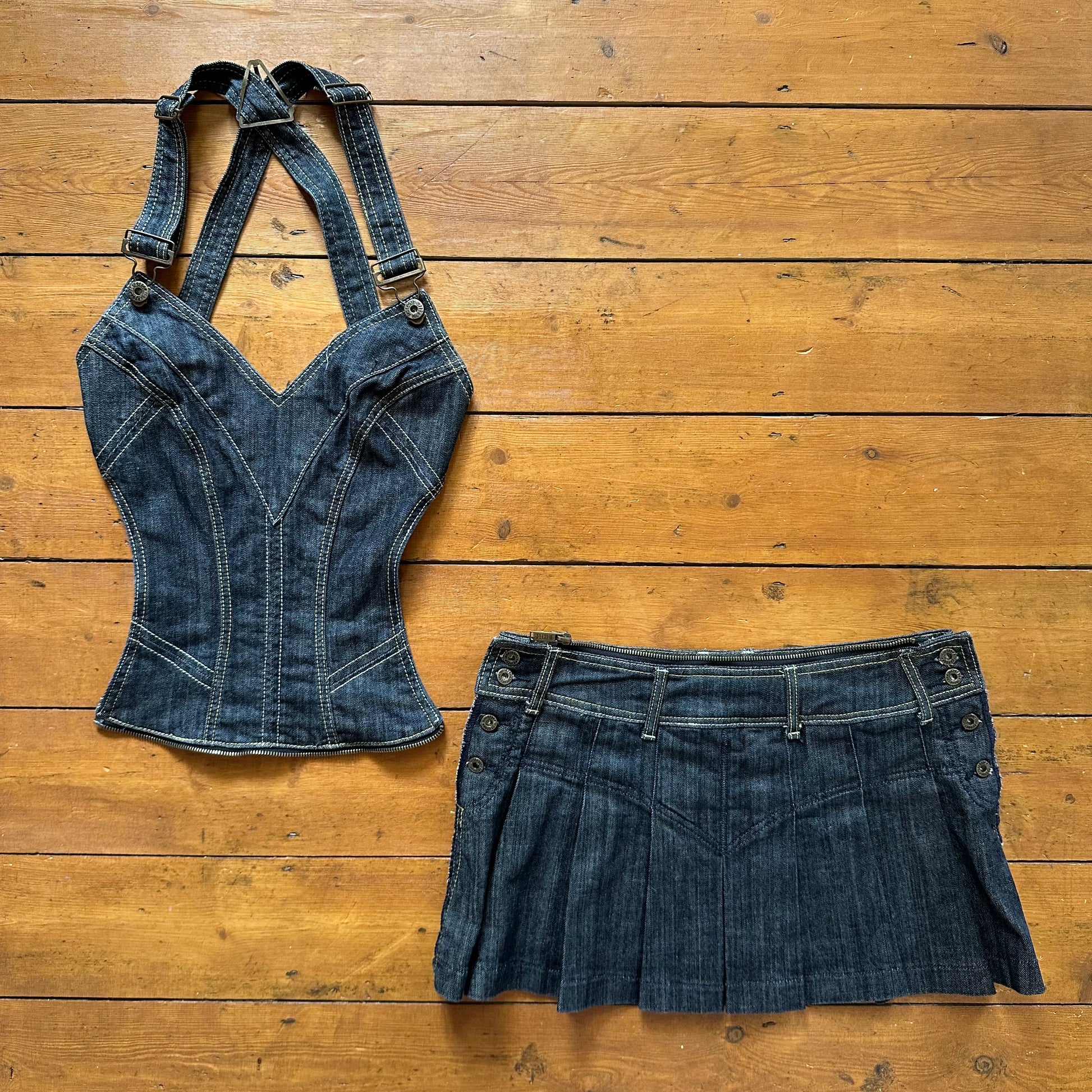backless top and contrast stitch pleated mini skirt set - can be worn as a dress also!