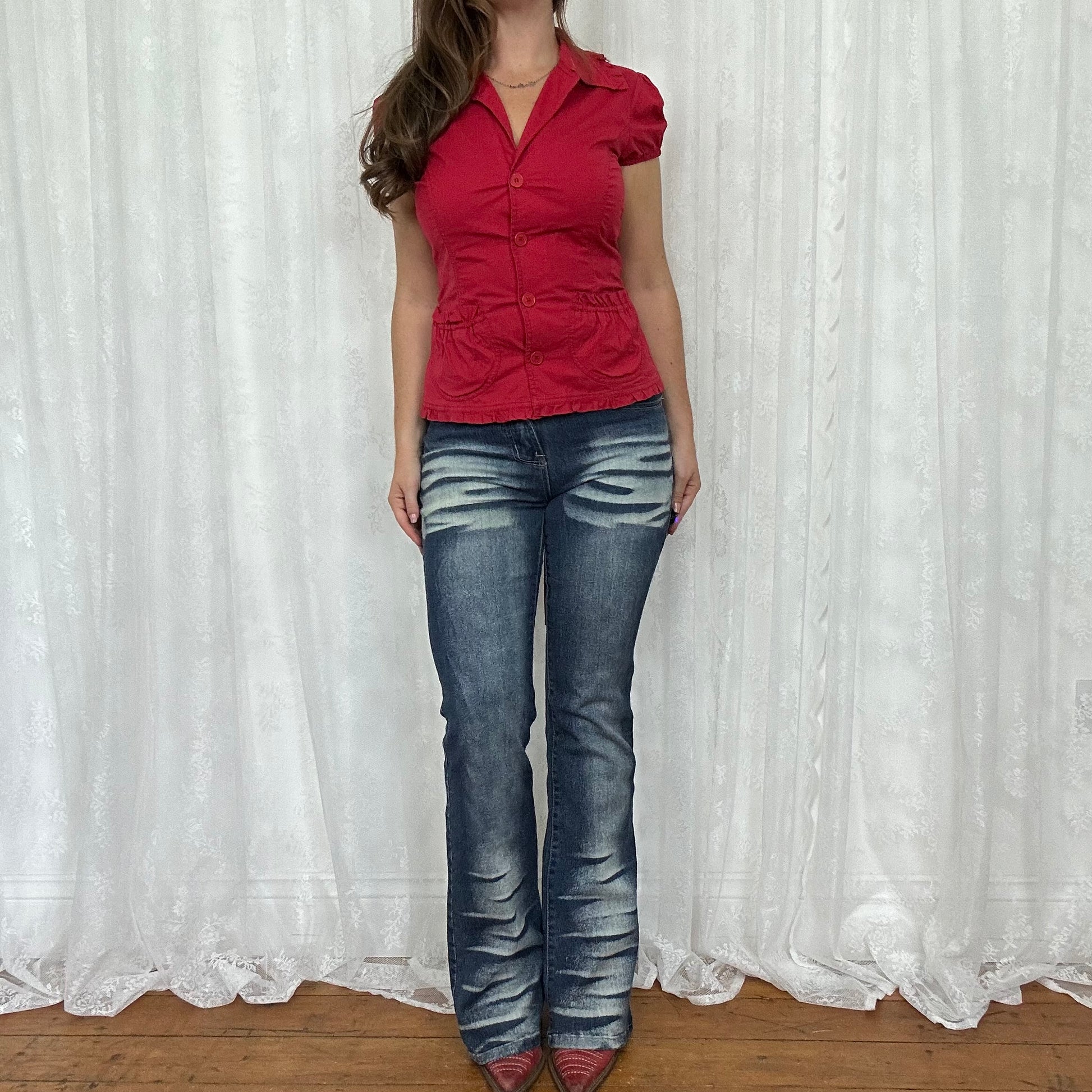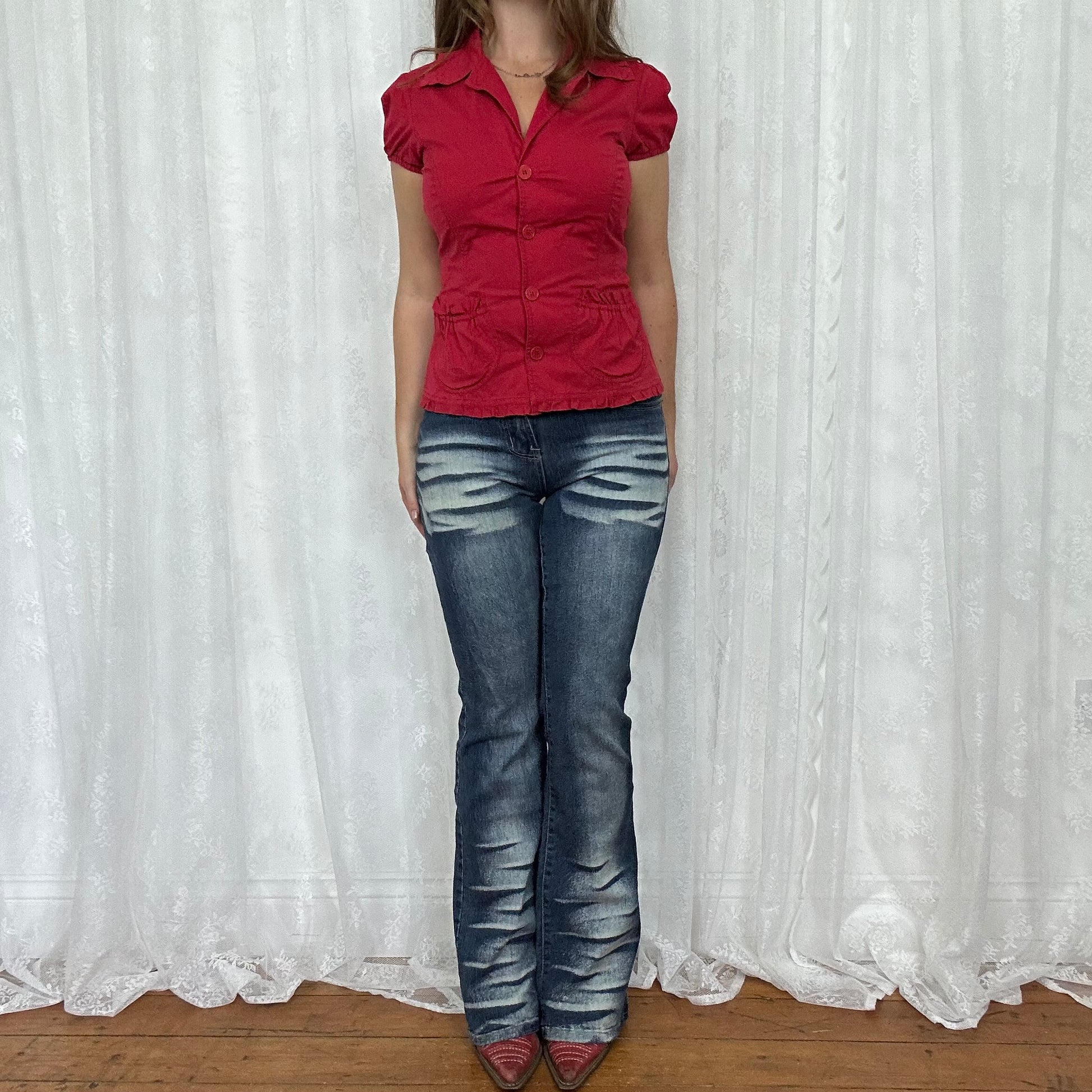 vintage 00s red short sleeve blazer style shirt