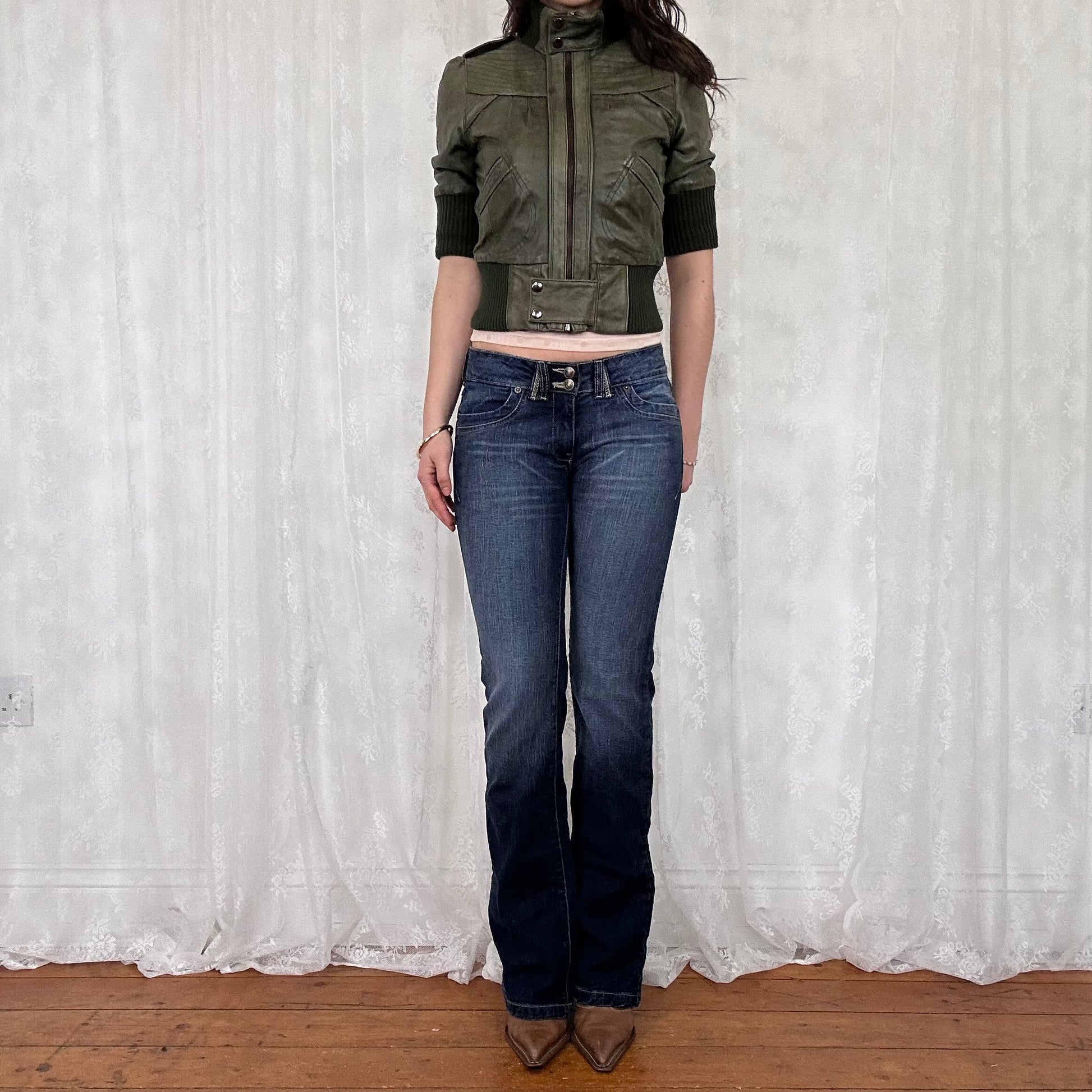 vintage 00s short sleeve fitted leather jacket