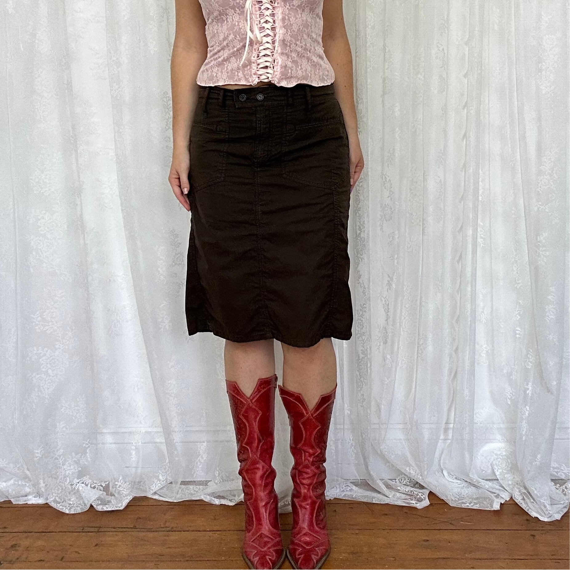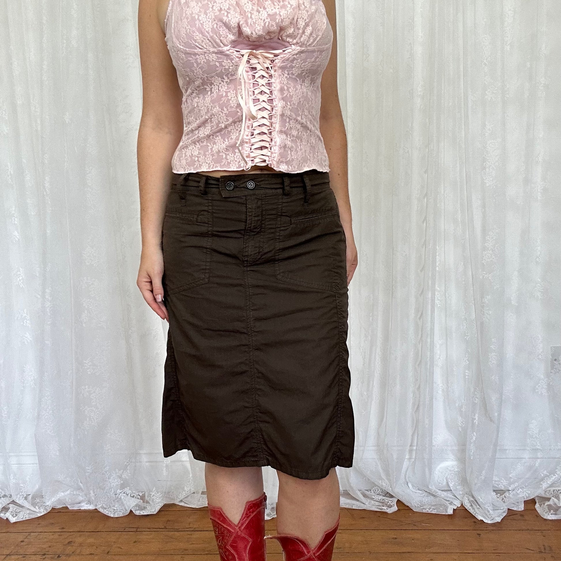 vintage 00s brown cargo midi skirt